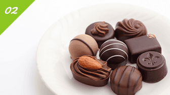 歯の健康づくりに甘いものは要注意。幼い頃はできるだけ、チョコレートやあめなどお砂糖がたっぷり入ったおやつは控えましょう。
