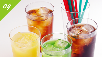 お菓子だけじゃなく、炭酸のジュースやスポーツドリンクはもちろん、100%果汁のジュースにも糖分がたっぷり。毎日飲むには、お茶か牛乳をお勧めします。お菓子じゃないからと歯みがき後にジュースは飲んではいけませんよ。