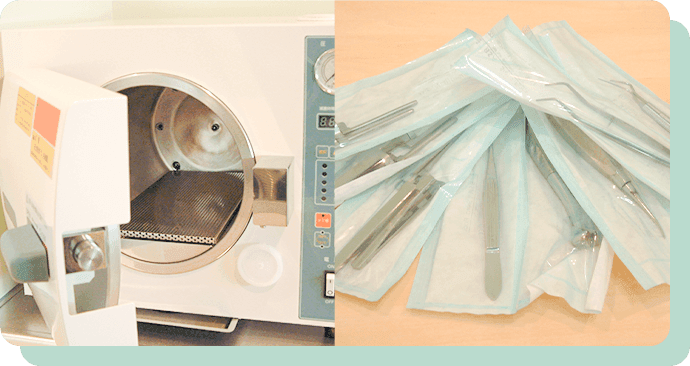 当クリニックでは、歯を削る器具をはじめインプラントに関するものなど、治療に使用する器具は、複数の滅菌装置を使用し、徹底した消毒、滅菌処置を行っています。