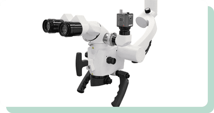 より精密な診断・治療を目指して、マイクロスコープ(ドイツSchott社のアポクロマテイックレンズを搭載した『ブライトビジョンLED5000』)を導入しています。これは、最大倍率25.6倍で、LEDライトを搭載しており、細部もクリアで明るく確認できる優れもの。