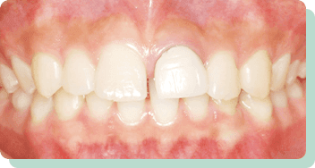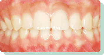 この方の場合は、ほんの少し歯を移動させた後、白い被せ物で対処しました。