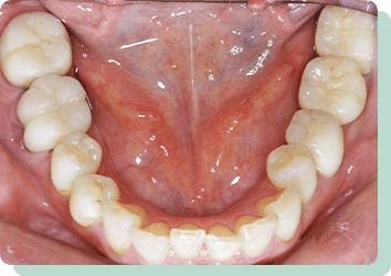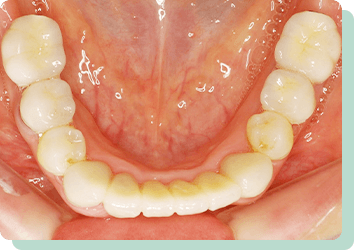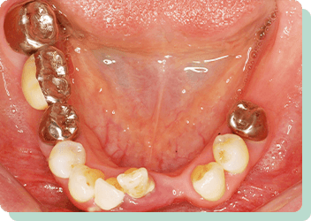 下の銀歯は、大きくお口をあけるとどうしても目立ってしまいますよね。このようなケースは、まず歯周治療やむし歯の治療が優先されます。