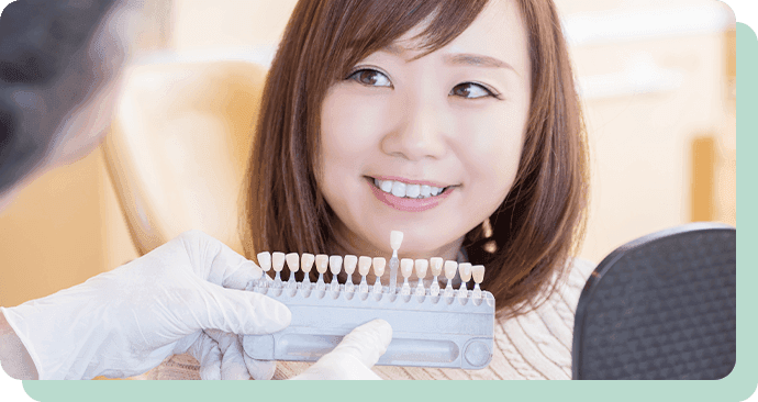 セラミック治療とは、保険適応外のセラミックなどの材質を使用し、天然歯に近い色の詰め物や被せものを作成し行う治療です。