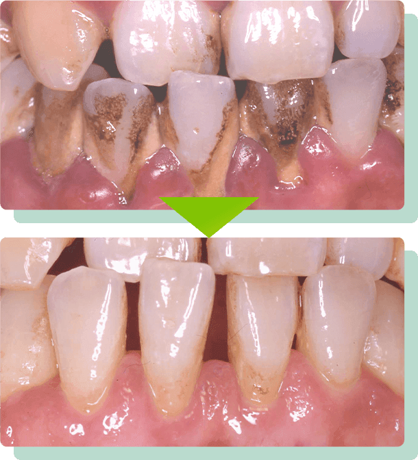 処置後は歯面がつるつるになり気持ちがよく、とても爽快に。強固な歯垢がたまり始める、数ヶ月に1度、定期的に行うことで効果を持続させていきます。