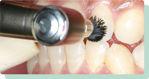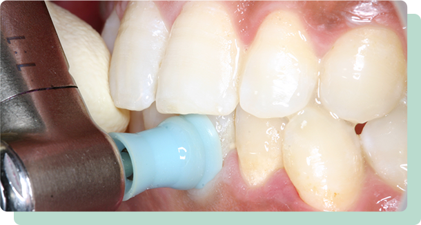 微粒子研磨ペーストを使用して、歯の表面や根元の部分を美しく磨き上げます。