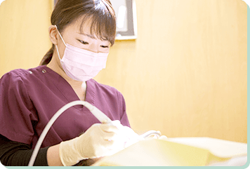 このとき、歯ブラシで落とすことができないステイン(ヤニや茶渋など)や汚れの塊などをキレイに落とします。